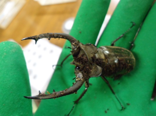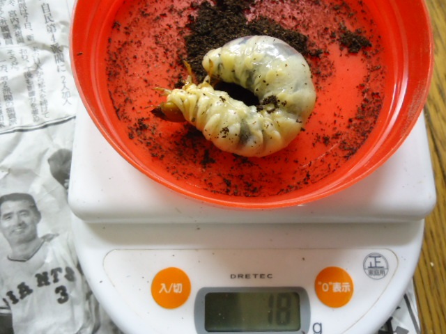 5月孵化 9月末頃に800mlカワラボトルにいれた幼虫♂のエサ交換をしました