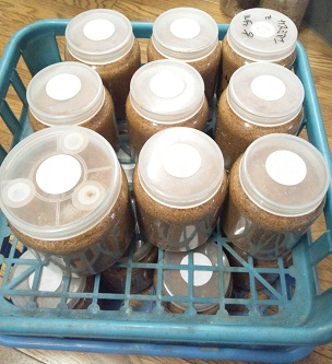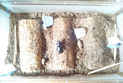 分かりにくいですが、まだ真っ白です。同じカワラの♀も蛹室を作っている様子。