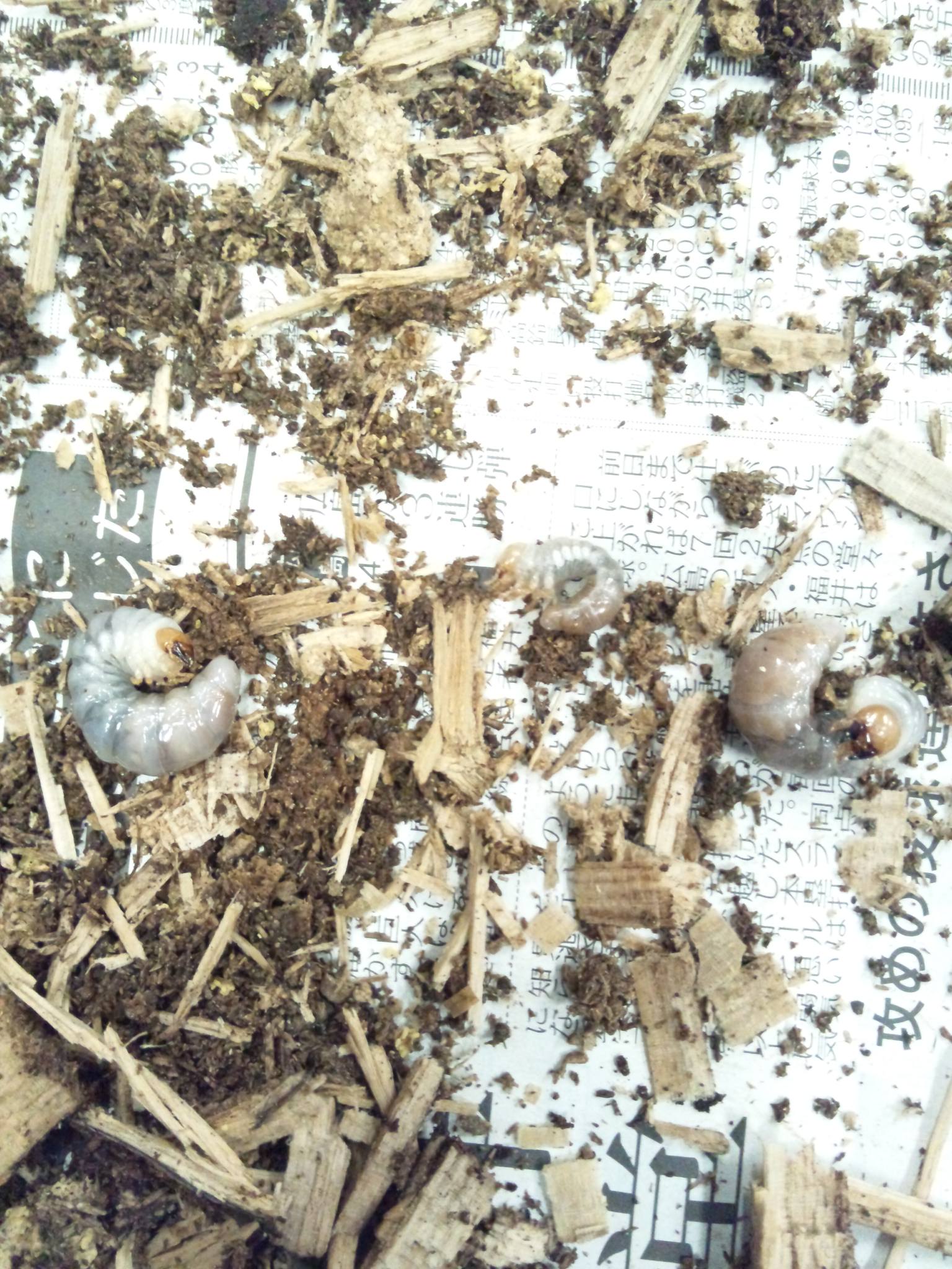 こちらはマットから出てきた初令の2匹です。材にも数頭いましたが、潰しそうだったので、