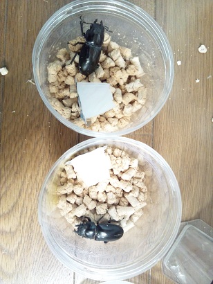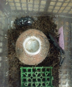 以前に4匹の幼虫を購入しました。2♂2♀といい感じだったのですが、2♀は★になってしまいました。マットが良くなかったみたいです。有名な生オガの発酵マットでしたがねぇ・・・