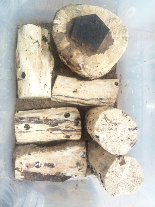 太いのは砂埋めレイシ材です。立てているのは柔らか材で、横置き材はいつも使用している材です。加水時にミヤマ幼虫マットを入れてバクテリア材の様にしています。