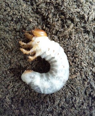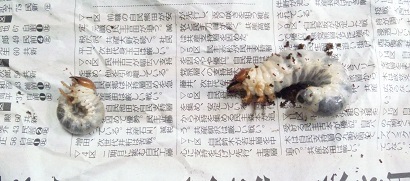 大きさが違いすぎる・・・上の幼虫は左側です。