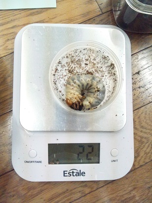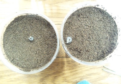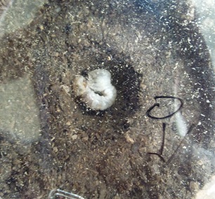 先日カワラに投入した幼虫ですが、穴の中で加令していました。
