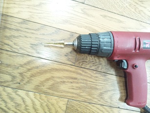もともと空いていた小さな穴は養生テープで塞いであり、中央に2個の穴を開けていましたが、